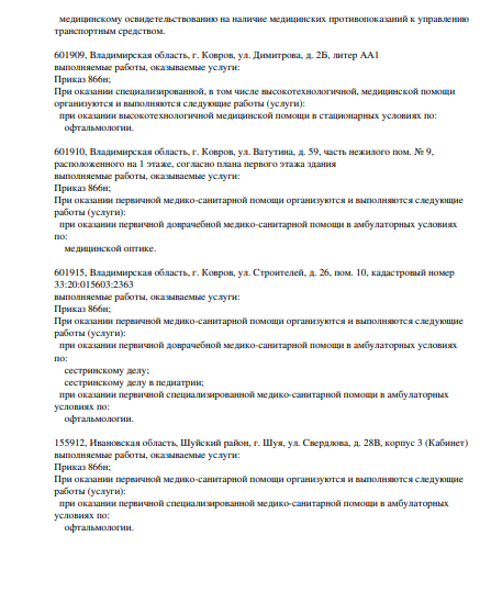 Проводит диагностику и лечение астигматизма, близорукости, дальнозоркости, конъюнктивит (вирусный, бактериальный, аллергический), косоглазия, ячменя. Занимается проверкой зрения, а также подбором очков и контактных линз.