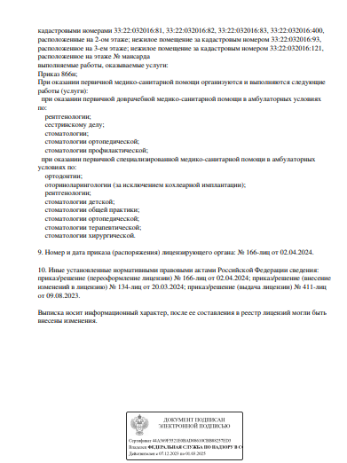 Предоставляет следующие услуги: восстановление зубной эмали и формы зубов, реставрацию зубов, молочных зубов, эстетическую реставрацию, специализируется на терапевтической стоматологии, лечении кист зубов и др.